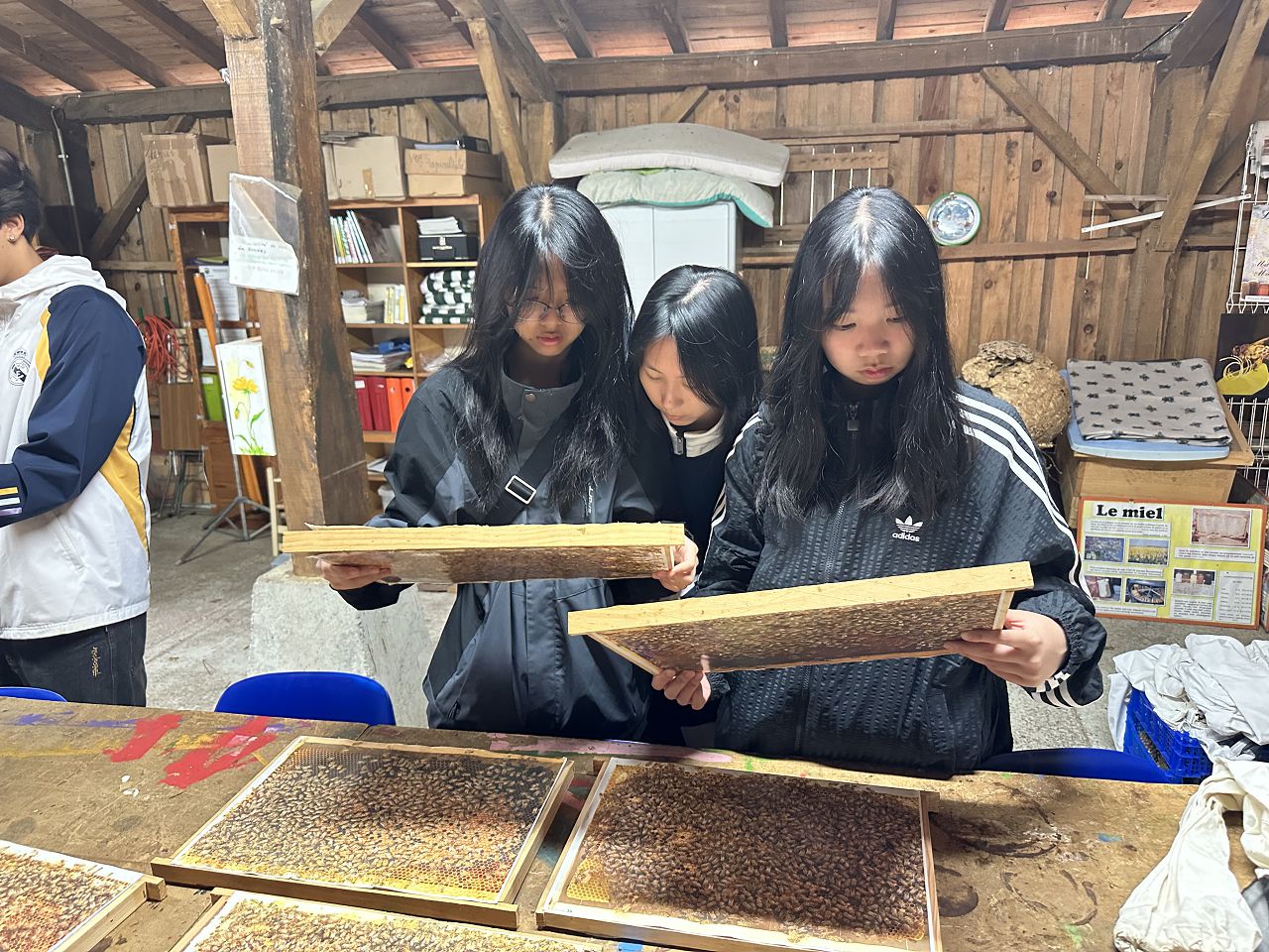 Today, we went to a bee farm and explored the world of bees. The beekeeper told us about the habits of bees and let us taste different kinds of honey. We also played a little game - we had to find the queen bee among 12 pictures. It was really interesting !