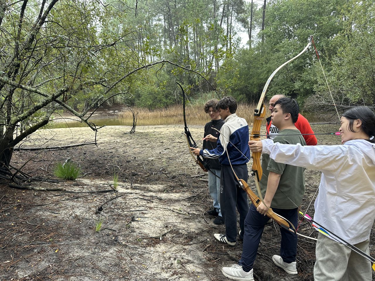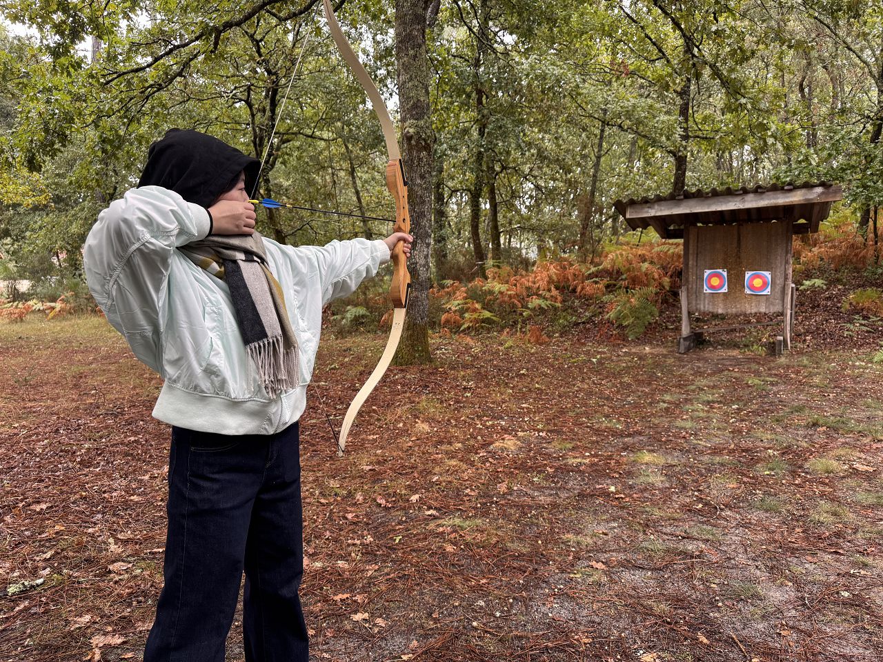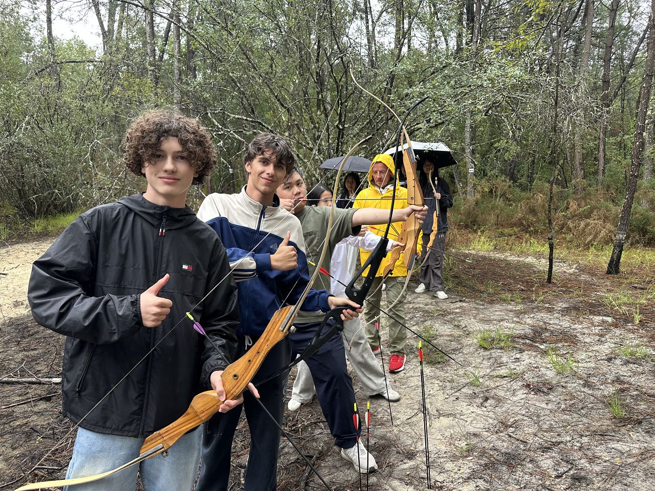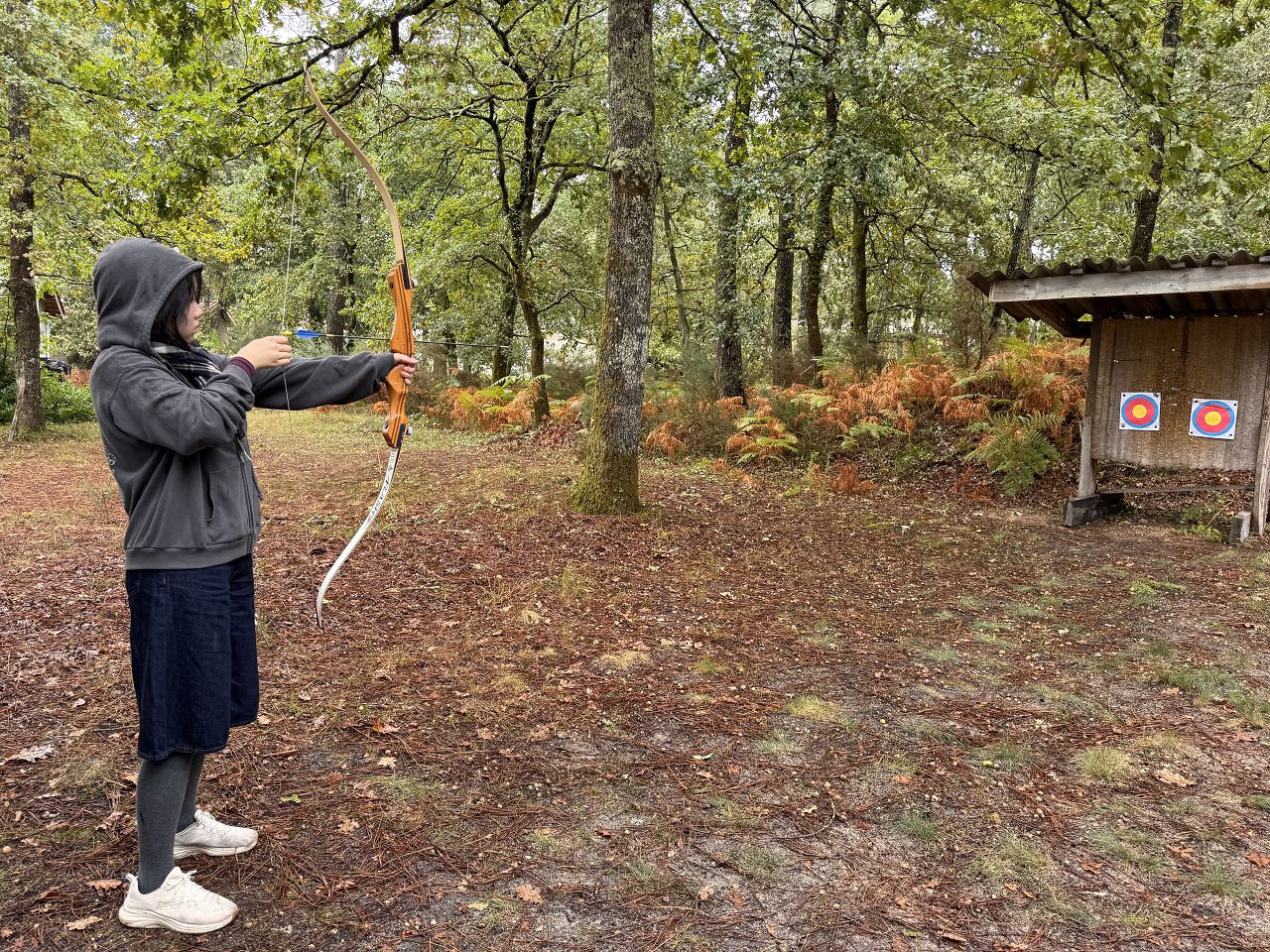 In the afternoon, we had an archery class and learned how to use a bow and an arrow. Every time we hit the target, we felt a great sense of achievement.