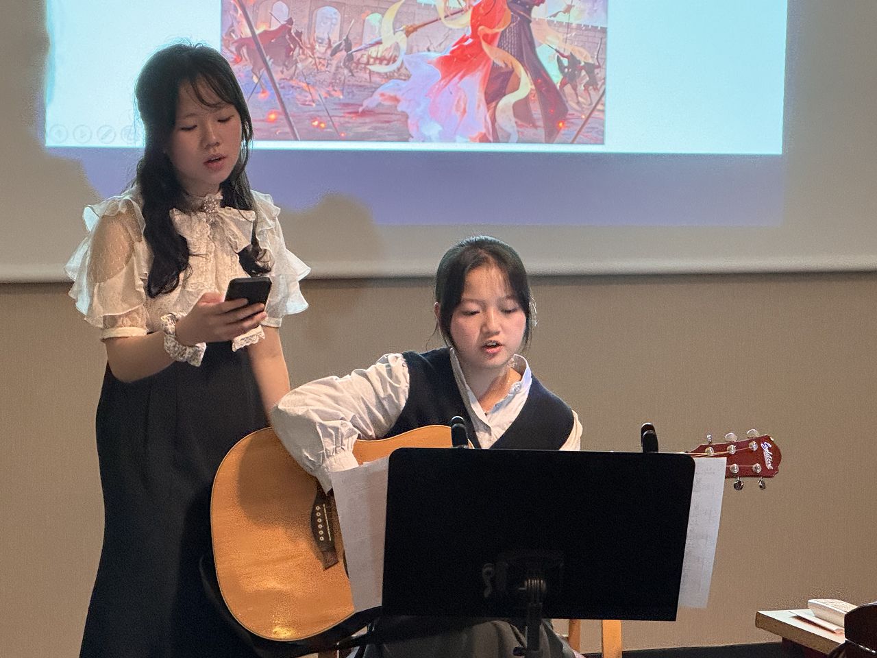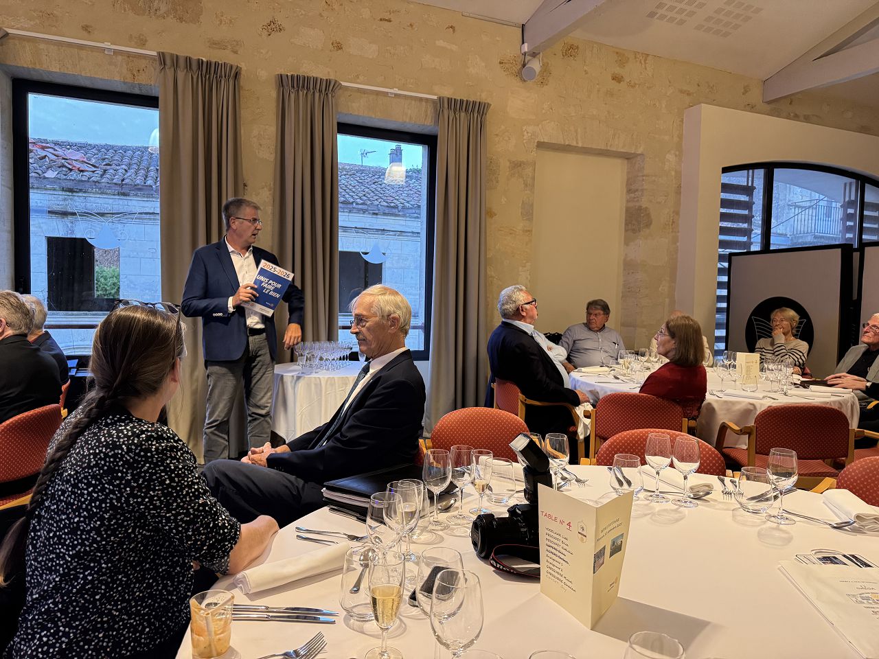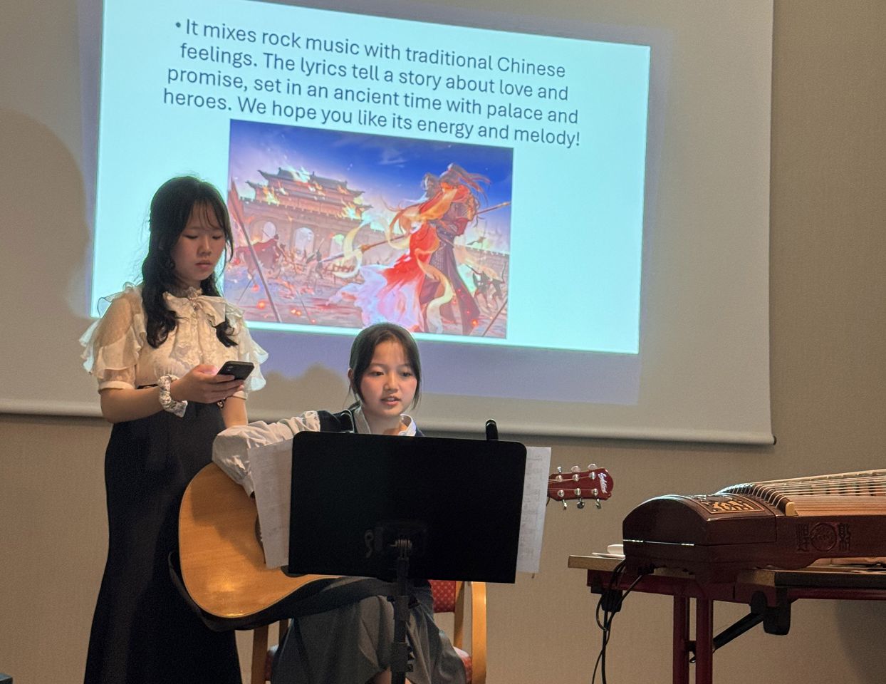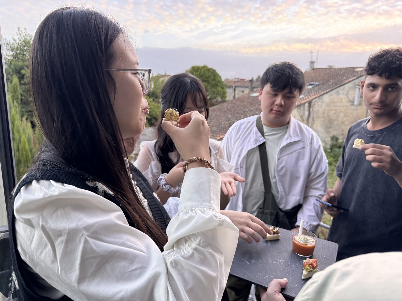 In the evening, we attended a dinner event organized by Rotary where we enjoyed delicious French food. Some of our team members played the Guzheng and sang a song. Everyone enjoyed their performances, and I felt very proud of them.