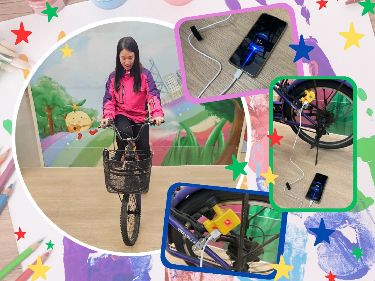現場設立三部單車,單車上安裝單車發電器。 遊戲透過收集參加者踏動單車時產生的運動能量,收集到的電能可提供手機、平板、筆電等進行充電,讓參加者體驗在運動時也能不浪費產生的能量。