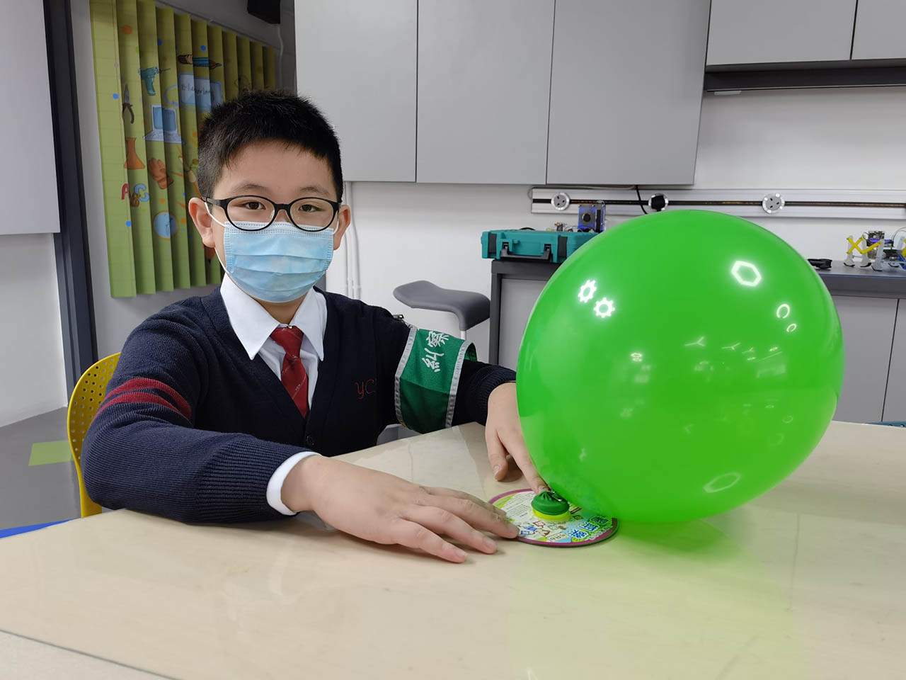 氣球下的小圓盤有一個小孔,遊戲過程中,高速氣體不斷由小孔噴出,給物體一個向下的力,將塑膠小圓盤抬離桌面,減小圓盤與桌面的摩擦力。