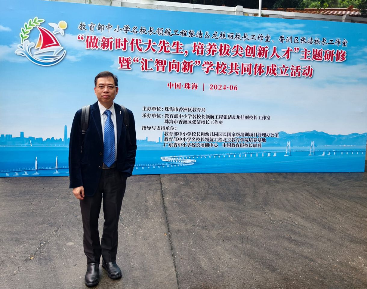 本人於2024年6月15及16日兩天獲珠海市香洲區教育局邀請到珠海出席「滙智向新」學校共同體成立典禮, 活動共超過100位來自各省市的中小學校長教師蒞臨支持, 同步亦開放線上學習。學校共同體在全國共有50所中小學合作及交流。