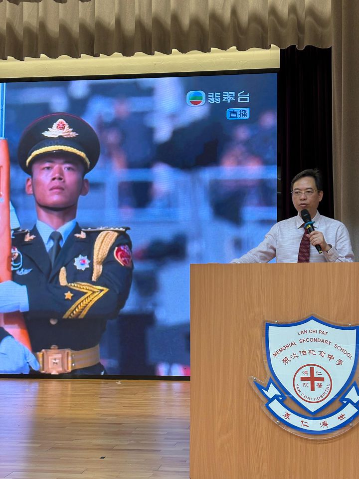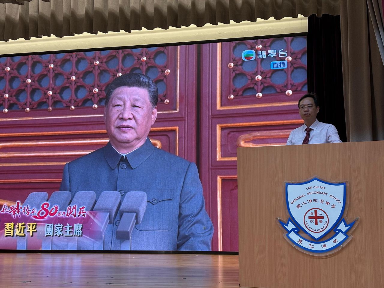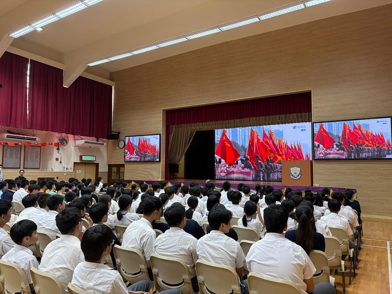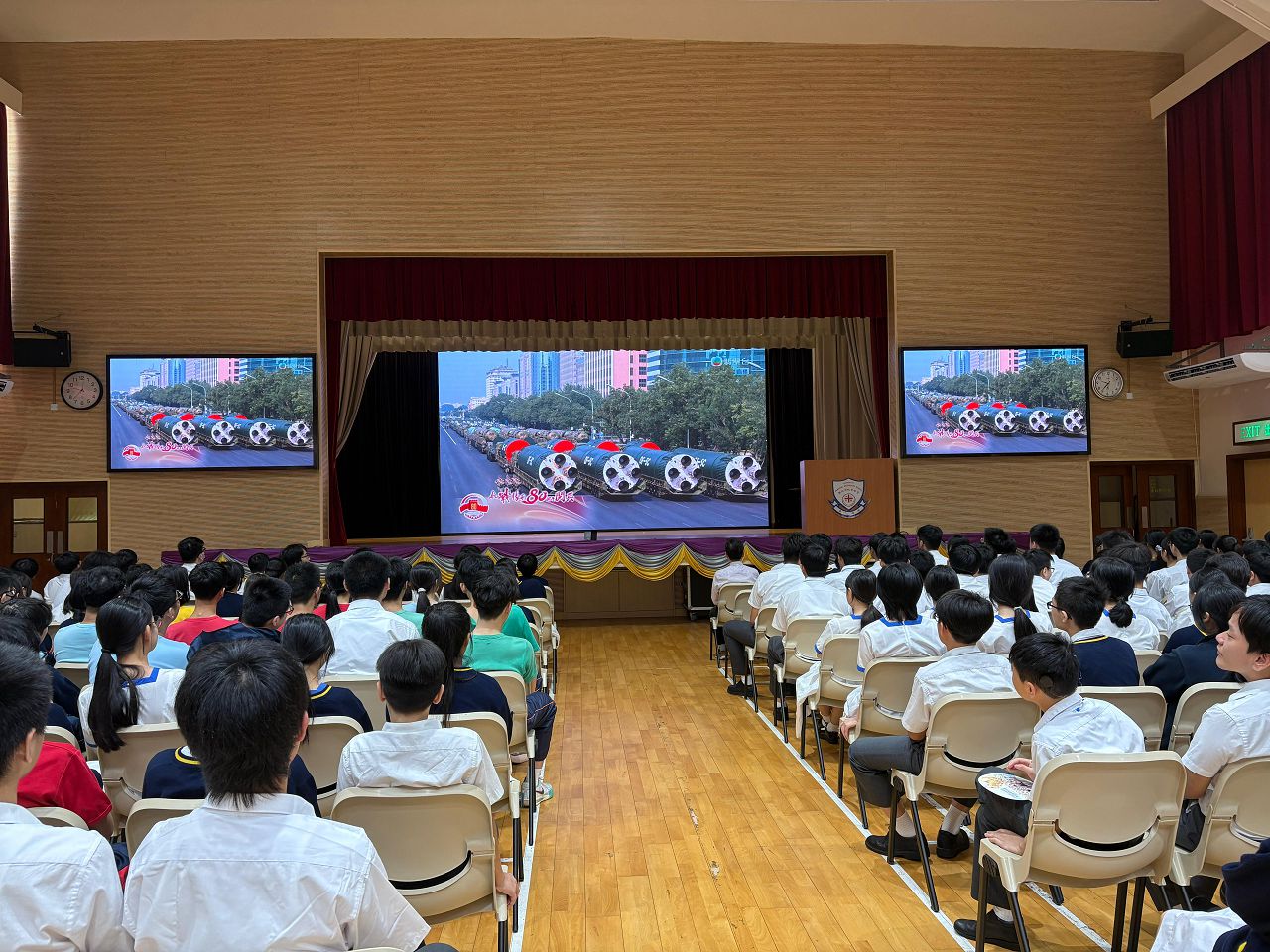 為響應教育局的呼籲,初中學生亦到禮堂收看閱兵儀式,了解這段艱苦的抗戰歷史、認識國家先進的軍備科技及國防實力,厚植愛國情懷,並帶出「銘記歷史、緬懷先烈、珍愛和平、開創未來」的訊息。