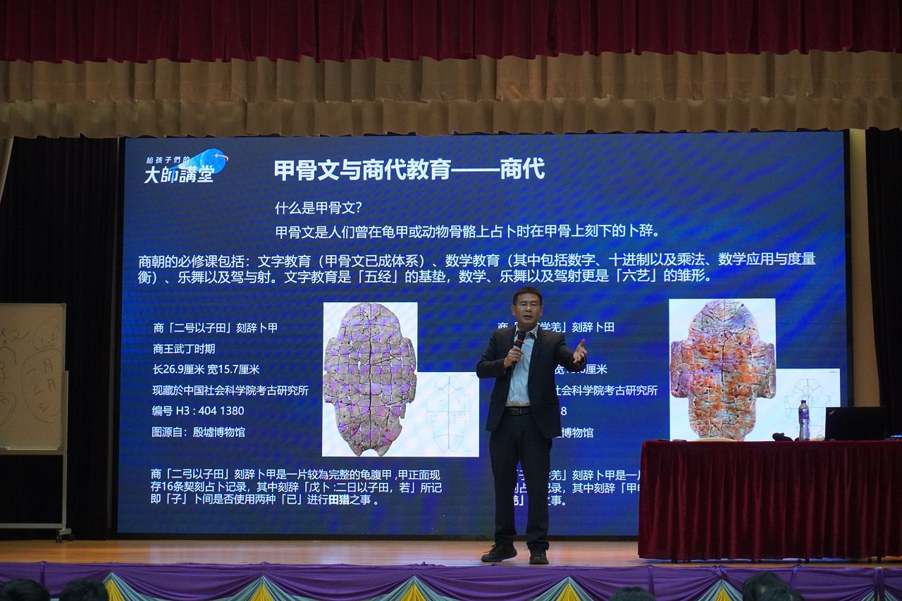 今天我們很高興在靚中參與由中國宋慶齡基金會主辦的「給孩子們的大師講座 — 少年有志 敢問蒼穹 摘星晨」歷史文化講座。我們非常榮幸能邀請到南方科技大學人文社會科學院講席教授、著名考古學家唐際根教授,與我們分享他在中國古代文明研究領域的寶貴經驗和深刻見解。唐際根教授是中國社會科學院考古研究所殷墟考古隊長,擁有豐富的考古實踐經驗和深厚的學術造詣。他多年來致力於甲骨文的研究和殷墟遺址的發掘,為我們全面理解中國五千年的文明史提供了重要的科學依據和文化啟示。