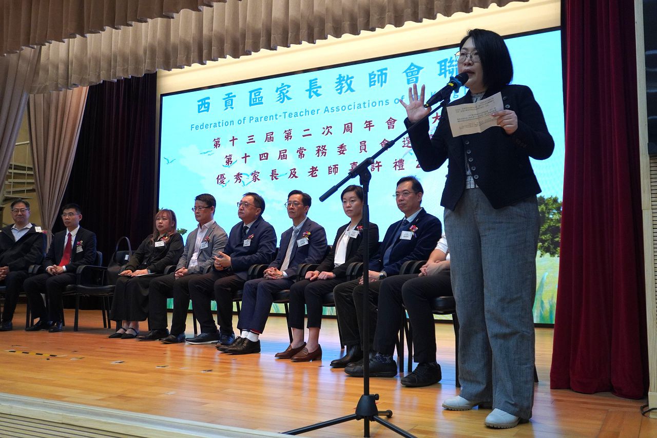 西貢區家長教師會聯會「第十三屆第二次周年會員大會暨第十四屆常務委員會選舉暨優秀家長及老師嘉許禮2025」已經於2025年11月22日在靚中圓滿舉行。是次大會盛況空前,主禮團包括教育局西貢區學校發展組總學校發展主任程慧珊女士、教育局西貢區學校發展組高級學校發展主任鄔俊豪先生、中聯辦新界工作部一級調研員趙克祥先生、家庭與學校合作事宜委員會主席方奕展先生MH、新界校長會副會長邱少雄校長MH、西貢區校長會主席暨西貢區津貼小學校長會副主席陳瑞良校長、西貢及將軍澳中學校長會主席徐家賢校長、社會福利署東將軍澳綜合家庭服務中心社會工作主任凌秀娟女士、香港警務處將軍澳警區警民關係組助理警民關係主任蘇明慧女士及靚中劉世蒼校長,為新一屆西聯發展增添動力。